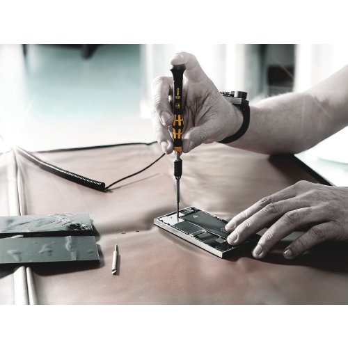 - Elektrostatisch sicheres Werkzeug durch Oberflächenwiderstand von < 10^9 Ohm