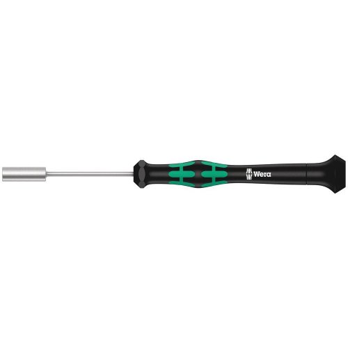 Hochwertiger Wera Micro Steckschlüssel für feinmechanische Verschraubungen. Durch Abstützen der Hand auf der Drehkappe und durch die Schnelldrehzone unterhalb der Drehkappe ist blitzschnelles Zwirbeln möglich. Zeitintensives Umgreifen entfällt. Kraftzone mit integrierten Weichzonen sorgt für die Übertragung hoher Löse- und Anzugsmomente. Präzisionszone für den richtigen Drehwinkel bei Justierarbeiten. Take it easy Werkzeugfinder mit Farbkennzeichnung nach Profilen und Größenstempelung – zum einfachen und schnellen Finden des benötigten Werkzeugs.