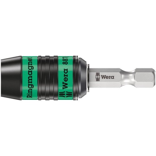 Rapidaptor Universalhalter für Bits mit 1/4"-Außensechskantantrieb nach DIN ISO 1173-C 6,3 und E 6,3. Die schwimmend gelagerte, freilaufende Magnethülse hält auch lange und schwere Schrauben bombenfest. Der Rapidaptor erlaubt eine Aufnahme der Bits auch ohne Betätigung der Hülse. Die Entnahme des Bits geschieht durch einfaches Nach-vorn-Schieben - für blitzschnellen Bitwechsel, auch mit nur einer Hand. 1/4"-Sechskant, passend für Schraubermaschinen mit Aufnahme nach DIN ISO 1173-F 6,3.