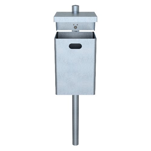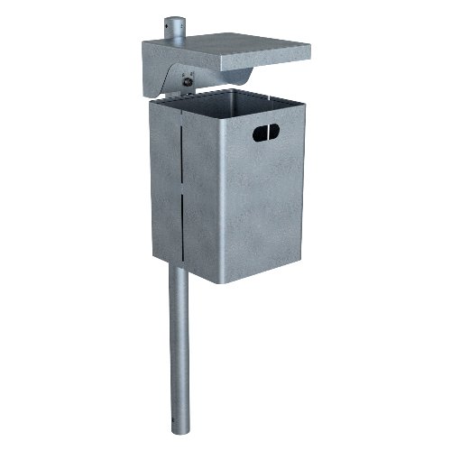 Mindestanzahl für die Bestellung von "Abfallbehälter mit Dach feuerverzinkt mit Standpfosten Ø60x1300mm" ist 1.