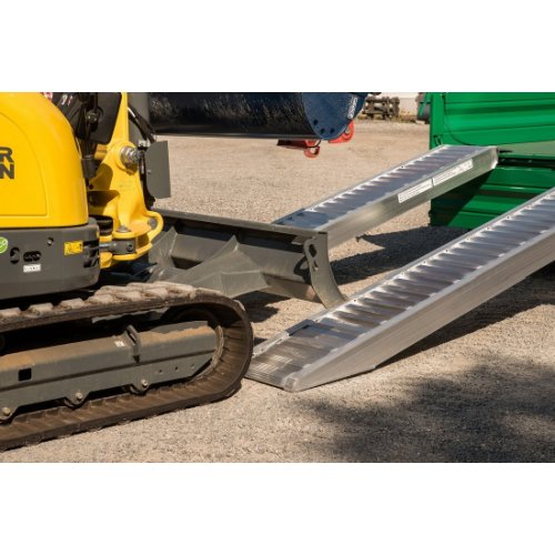 - Diese Rampe ist für die Verladung von mittleren bis schweren Fahrzeugen wie Bagger, Traktoren oder Radlader, die mit Luftbereifung oder Gummiketten ausgerüstet sind, geeignet.