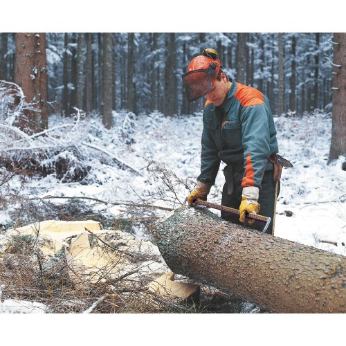Einfacher und sehr robuster Anreißmeterstock zum Anreißen von Baumstämmen. Das ovale Aluminium-Profil hält auch höheren Belastungen stand und die extra stabilen verzinkten Stahl-Haken machen ihn nahezu unverwüstlich. Die beidseitige schwarze cm-Teilung unter einer titanfarbener Eloxalschicht macht das Ablesen auch in der Dämmerung einfach.