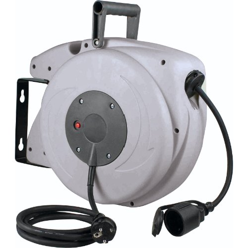 - Kein mühsames Aufwickeln der Leitung mehr notwendig. Ein leichter Zug am Kabel genügt und die Aufrollautomatik verstaut das gesamte Kabel im Gehäuse des Kabelaufrollers. Durch die fixierte Arretierung auf dem Kabel kann die Schutzkontaktkupplung beim Aufrollen nicht in das Gehäuse gezogen werden.