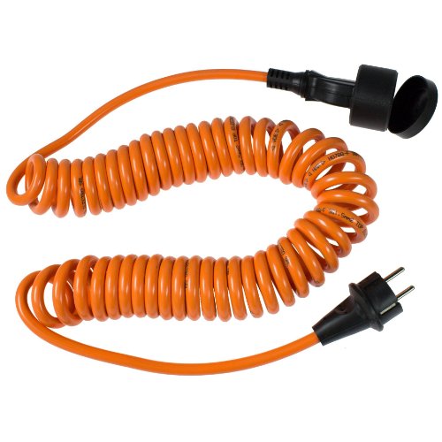 - Spiralleitung mit Schutzkontaktstecker und -kupplung mit Schutzkappe