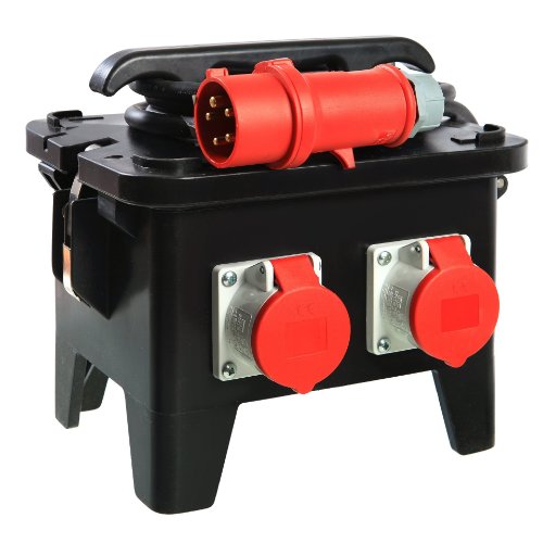 - Ausgang: 4 Schutzkontaktsteckdosen 230V, 16A / 2 CEE-Steckdosen 400V, 16A, 5-polig