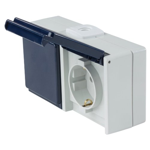 Aufputz Steckdose 2-fach, waagerecht, mit 2 Leitungseinführungen