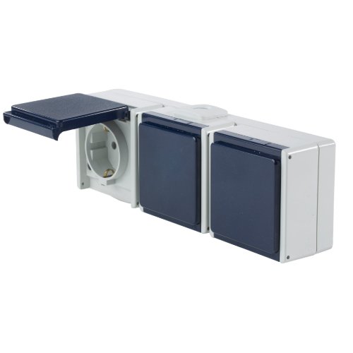 Aufputz Steckdose 3-fach, waagrecht, mit 2 Leitungseinführungen