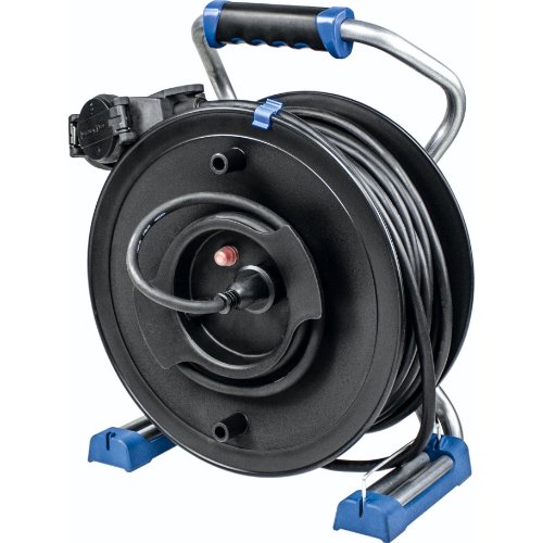 - Trommelkörper aus robustem, hochbruchfestem Spezialkunststoff mit Kabelhaspel