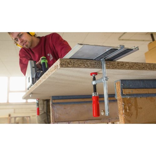 - zum sicheren Fixieren von Führungsschienen der Marken Festool, Protool, Metabo, Makita, Hitachi/Hikoki etc. und zumSpannen in Profilen sowie auf ArbeitstischenSpannkraft bis zu 1.800 N