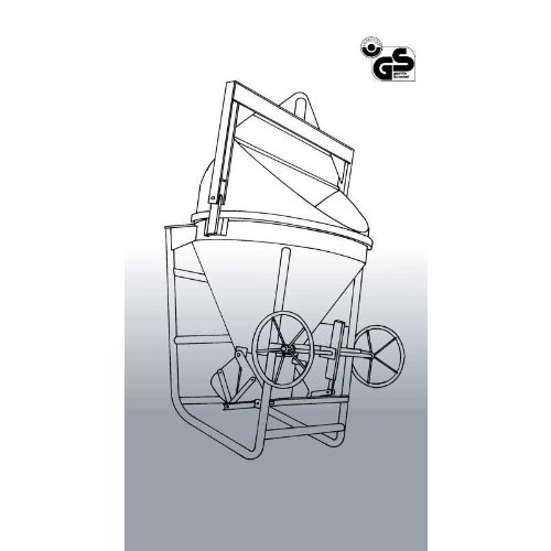 Liegende mit zylindrisch-konische Form und zylindrischem, geradem Auslauf, schwere stabile Ausführung mit Hebelbetätigung des Patentverschlusses und Bügel (? 750 l Volumen mit Traverse).