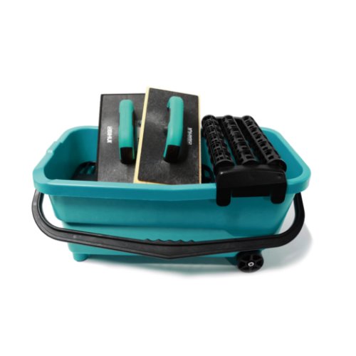 Ausgestattet mit robuster Schaufel, stabilen Rädern und seitlichen Stützen ist die Smart Washy besonders mobil und standsicher. Das Dreifach-Rollensystem sorgt für schnelles und gründliches Auswaschen des Schwammbretts, während das verstärkte Kunststoffgitter sicher in Position bleibt. Das enthaltene Softgrip-Schwammbrett mit Blockschnitt und weichem EVA-Board garantiert eine gleichmäßige Reinigung ohne Kratzer – ideal für Wand- und Bodenfliesen.