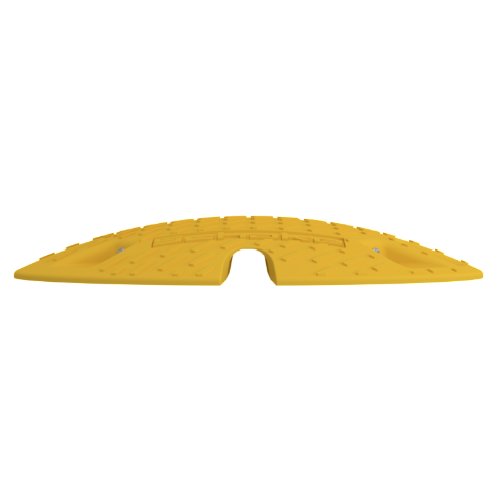 Diese Bodenschwelle aus Recyclingmaterial strukturiert Verkehrswege auf Betriebsgeländen, Parkflächen und Zufahrten. Die Überfahrlänge von 400 mm definiert den Überfahrbereich. Mittelstücke sind 500 mm breit und mit vier Reflektorlinsen ausgestattet, Endstücke messen 215 mm in der Breite und tragen ebenfalls Reflektorlinsen; die Elemente verbessern die Erkennbarkeit bei Dunkelheit. Die Montage erfolgt durch Aufdübeln oder Aufkleben (3393-B / 39117), das Befestigungsmaterial ist nicht enthalten. Verbindungszapfen zur sicheren Kopplung sowie ein integrierter Kabelkanal stehen ausschließlich bei Varianten mit 50 oder 60 mm Höhe zur Verfügung. Endstücke mit Adapter in Gelb sind in 50 mm Höhe erhältlich. Auf Wunsch lässt sich die Schwelle mit einer Logoplatte kennzeichnen (3392-LOGO). Die modulare Ausführung ermöglicht Reihen aus Mittel- und Endstücken, die sich an die geforderte Spurbreite und Einbausituation anpassen. Der Kabelkanal dient dem geschützten Führen von Leitungen bei temporären Installationen.