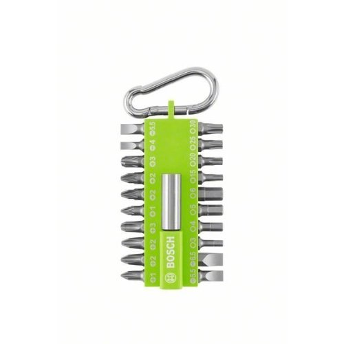 21-tlg. Schrauberbit-Set mit Snap-hook (hellgrün) – Ausstellerversion. Praktisches Set mit 20-gängigen Schrauberbits und einem Universalmagnet-Bithalter. Dank des robusten Snap-hooks, der einfach an Hose oder Taschen befestigt werden kann, sind wichtige Bits während der Arbeit stets in Reichweite. Schneller Zugang zu den Bits. Robuster Snap-hook zur Befestigung des Sets an der Hose oder Werkzeugtasche.Schrauberbits zum Schrauben mit den gängigsten Schrauben (Phillips, Pozidriv, Torx, Schlitz und Innensechskant).Geeignet für Elektrowerkzeuge und Handschrauber aller gängigen Marken.