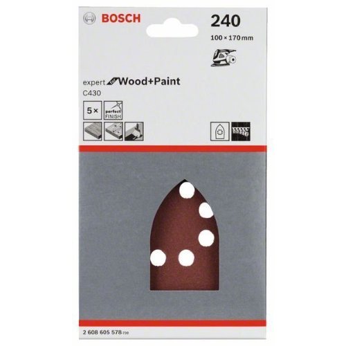 Das Schleifblatt C430 Expert for Wood and Paint zeichnet sich durch seine außergewöhnlich lange Lebensdauer beim Schleifen von Holz-, Furnier- und Hartholzoberflächen aus. Die Oberfläche mit elektrostatisch offen gestreuten Schleifkörnern mit definierten Zwischenräumen gestattet eine gleichmäßige Staubabsaugung und verhindert somit ein Verstopfen des Blattes. Die harte Schleifkörnung ist verschleißfest und gestattet eine längere und wiederholte Blattnutzung. Diese Produkt ist für das Aufrauen und Schleifen von Farben, Lacken, Füllstoffen, Grundierungen und Holzmaterialien vorgesehen und für das Anschleifen von Lack auf Oberflächen geeignet. Es ist zudem geeignet, um bestimmte Materialien nach der Benetzung zu schleifen oder Ränder zu entgraten. Der vollkunstharzgebundene Belag sorgt für Haltbarkeit. Die äußerst flexible C-/B-Papierrückseite gestattet Falten ohne Rissbildung.