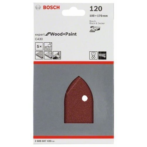 Das Schleifblatt C430 Expert for Wood and Paint zeichnet sich durch seine außergewöhnlich lange Lebensdauer beim Schleifen von Holz-, Furnier- und Hartholzoberflächen aus. Die Oberfläche mit elektrostatisch offen gestreuten Schleifkörnern mit definierten Zwischenräumen gestattet eine gleichmäßige Staubabsaugung und verhindert somit ein Verstopfen des Blattes. Die harte Schleifkörnung ist verschleißfest und gestattet eine längere und wiederholte Blattnutzung. Diese Produkt ist für das Aufrauen und Schleifen von Farben, Lacken, Füllstoffen, Grundierungen und Holzmaterialien vorgesehen und für das Anschleifen von Lack auf Oberflächen geeignet. Es ist zudem geeignet, um bestimmte Materialien nach der Benetzung zu schleifen oder Ränder zu entgraten. Der vollkunstharzgebundene Belag sorgt für Haltbarkeit. Die äußerst flexible C-/B-Papierrückseite gestattet Falten ohne Rissbildung.