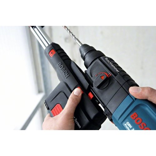Absaughammer mit SDS plus GBH 2-23 REA, Die kompakteste Lösung für staubfreies Bohren, Integrierte, abnehmbare Absaugeinheit für sauberes, staubfreies Arbeiten, Komfortables Arbeiten auch über Kopf durch besonders kompakte Bauweise, Bohrkronenadapter-Set zum Absaugen bei Arbeiten mit Hohlbohrkronen (bis 68 mm) – auch mit externem Sauger verwendbar, Maschinentuch; Handwerkerkoffer; Absaugeinheit; Zusatzgriff (ET-Nr. 1 619 P06 104); 5 x Dichtungsring (ET-Nr. 1 619 P04 548)