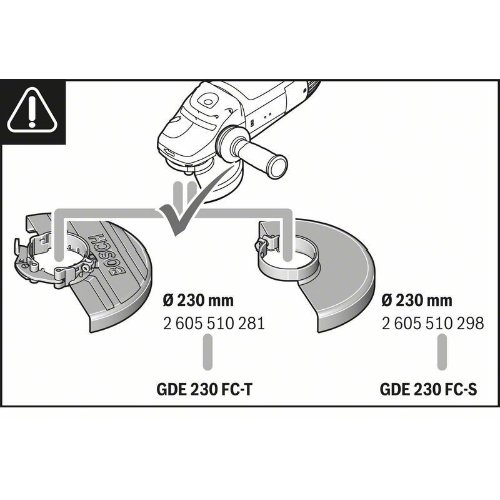 Systemzubehör GDE 230 FC-S, Die GDE 230 FC-S Professional ist Boschs „Full Cover”-Absaughaube für Winkelschleifer mit Standardschutzvorrichtung und 230 mm Scheibendurchmesser. Ihr geschlossenes Design sorgt für eine optimierte Staubabsaugung und damit für nahezu staubfreies Arbeiten. Unkompliziertes Handling wird durch eine praktische 360°-Verbindung zwischen Winkelschleifer und Staubsauger ermöglicht. Einstellbare Schnitttiefe und integrierte Rollen unterstützen präzises Arbeiten. Die Absaughaube ist kompatibel mit dem Bosch Click & Clean System sowie zahlreichen Winkelschleifern mit Standardschutzvorrichtung.