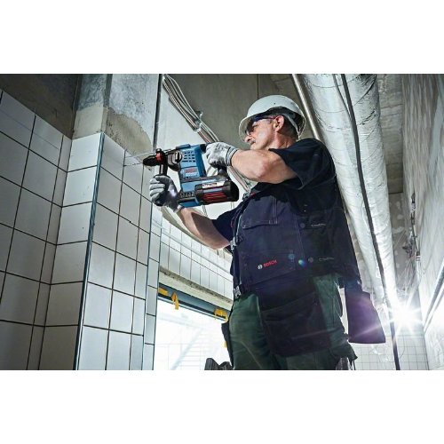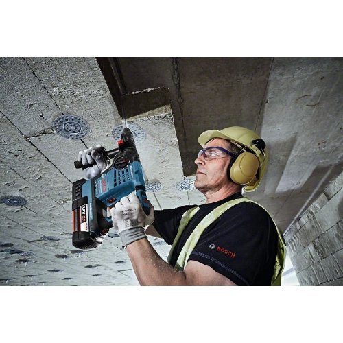 Akku-Bohrhammer mit SDS plus GBH 36 VF-LI Plus, Der GBH 36 V-LI Plus Professional ist der kraftvolle SDS plus-Akku-Bohrhammer mit 36 Volt für anspruchsvolle Arbeiten in Beton. Sein Schlagwerk liefert eine Schlagenergie von 3,2 J und sorgt für schnellen Arbeitsfortschritt. Der Bohrhammer verfügt außerdem über KickBack Control und Electronic Precision Control (EPC) für eine bessere Handhabung und hohen Anwenderschutz. Sein langlebiger 36V-Akku erleichtert einfache Meißelarbeiten durch eine längere Laufzeit. Dieses Elektrowerkzeug eignet sich zum Bohren und Meißeln in Beton, Mauerwerk, Holz und Metall. Er ist mit verschiedenen Staubabsaugungen sowie allen Bosch Professional 36V-Akkus und -Ladegeräten kompatibel. Ferner verfügt der GBH 36 V-LI Plus Professional über konstante Drehzahl, ein LED-Licht, Überlastkupplung, variable Drehzahl, Vario-Lock und Vibration Control. Zusatzhandgriff (2 602 025 191); Tiefenanschlag 310 mm (1 613 001 003); Schnellwechselbohrfutter 13 mm (2 608 572 212); 1/1 L-BOXX-Einlage für Gerät und Ladegerät (1 600 A00 4L0); L-BOXX 238 (1 600 A01 2G2); Schnelllader; Wechselfutter SDS plus (2 608 572 213); 2 x Akku GBA 36V 4.0Ah (1 600 Z00 03C)