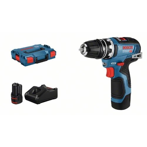 Akku-Bohrschrauber GSR 12V-35 FC, Der Akku-Bohrschrauber GSR 12V-35 FC Professional mit bürstenlosem Motor ist für jeden Einsatz das vielseitigste Werkzeug im 12-Volt-Segment. Sein FlexiClick System umfasst vier Zubehörteile (10-mm-Bohrfutter, arretierbarer Bithalter, Winkelaufsatz (rechtwinklig) und Exzenteraufsatz), die einfach gewechselt, miteinander kombiniert und justiert werden können und so bis zu 8 Konfigurationen und damit höchste Flexibilität bieten. Extrem kompakt bei (mit 35 Nm und 1.750 min-1) gleichzeitig hoher Leistungskapazität bietet das Werkzeug optimale Handlichkeit und eignet sich damit perfekt für Arbeiten an schwer zugänglichen Stellen. Sein bürstenloser Motor in Kombination mit Electronic Motor Protection bietet Schutz vor Überlastung und sorgt für eine längere Haltbarkeit des Werkzeugs. Dieses Werkzeug eignet sich perfekt zum Bohren und Schrauben in Holz (32 mm) und Stahl (10 mm). Es ist kompatibel mit allen Bosch Professional 12V-Akkus und -Ladegeräten. Der GSR 12V-35 FC Professional ist zudem mit 2 Gängen, Autolock, Gürtelclip/-haken, Bithalter, Ladezustandsanzeige, Electronic Cell Protection, LED-Licht, Li-Ion-Akku, Metall-Getriebegehäuse, Rechts-/Linkslauf und Drehzahlvorwahl ausgestattet. L-BOXX 102 (1 600 A01 2FZ); Bohrfutteraufsatz GFA 12-B (1 600 A00 F5H); Schnellladegerät GAL 12V-40 Professional (1 600 A01 9R3); 2 x Akku GBA 12V 3.0Ah (1 600 A00 X79)