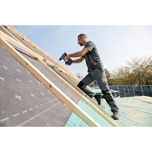 Akku-Bohrschrauber GSR 18V-150 C, Der GSR 18V-150 C Professional ist der clevere Bohrschrauber mit einzigartiger Leistung und Kontrolle für verschiedenste Schraub- und Bohrarbeiten. Er ist die perfekte Wahl für extrem schnellen Arbeitsfortschritt dank außergewöhnlich leistungsstarker ProCORE18V-Akkus und eines bürstenlosen Motors mit BITURBO-Technologie bei einem maximalen Drehmoment von 150 Nm. Die präzise Electronic Angle Detection gewährleistet bei langen Schrauben immer den richtigen Winkel, und die zuschaltbare KickBack Control für die Arbeit mit Lochsägen verringert das Risiko plötzlicher Rotation um die Achse, wenn das Werkzeug verklemmt. Dank Metallbohrfutter und Metallgetriebe ist der Bohrschrauber an jedem Einsatzort extrem zuverlässig und robust. Der GSR 18V-150 C Professional zeigt optimale Ergebnisse beim Schrauben und Bohren in Holz und Metall, besonders beim Bohren großer Durchmesser, z. B. Lochsägen bis 150 mm. Der Bohrschrauber ist kompatibel mit allen Bosch Professional 18V-Akkus und -Ladegeräten (Professional 18V System); für maximale Leistung ProCORE18V ≥ 5,5 Ah verwenden. Zusatzhandgriff (1 602 025 07Y); L-BOXX 136 (1 600 A01 2G0); L-BOXX-Einlage für Gerät