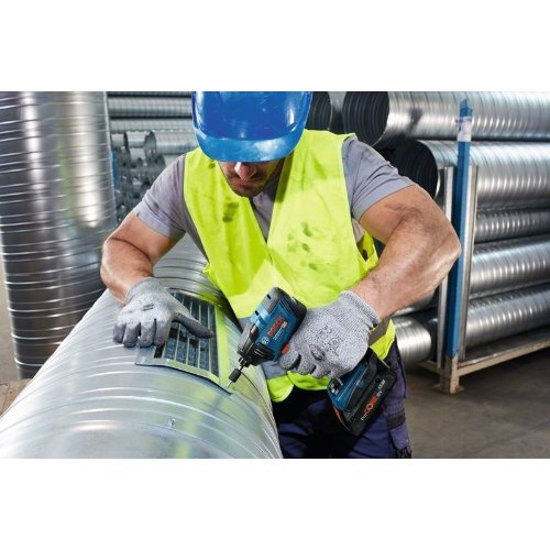 Akku-Drehschlagschrauber GDR 18V-210 C. Der Drehschlagschrauber GDR 18V-210 C Professional mit 1/4-Zoll-Sechskant-Bit-Aufnahme liefert eine starke Leistung und verhindert gleichzeitig Materialschäden. Zwei Standardbetriebsarten am User Interface, Blechschraube (A) und Holzschraube (B) sorgen für mehr Kontrolle und weniger gebrochene oder abgeschlagene Schraubenköpfe, verschlissene Gewinde und beschädigte Werkstücke, indem der Drehschlagschrauber verlangsamt oder ausgeschaltet wird. Jede Betriebsart kann über die Bosch Toolbox App individuell eingestellt werden. Dieser kraftvolle und präzise Akku-Drehschlagschrauber liefert ein Drehmoment von 210 Nm. Drei Geschwindigkeits-/Drehmomentstufen sorgen für beeindruckende Kontrolle und größere Flexibilität bei der Arbeit. Dieser Drehschlagschrauber ist für viele Anwendungen das Elektrowerkzeug der Wahl, sowohl beim Eindrehen von Blechschrauben als auch Holzschrauben. Das Gerät ist mit allen Bosch Professional 18V-Akkus und -Ladegeräten (Professional 18V System) kompatibel. Der GDR 18V-210 C Professional verfügt für mehr Komfort über eine Statusanzeige, ein LED-Licht und einen Gürtelclip. Im Lieferumfang enthalten: 1x Bluetooth Low Energy Modul GCY 42 Professional (1 600 A01 6NH), 1/2 L-BOXX-Einlage für Gerät und Ladegerät (1 600 A01 CU5), 1/2 L-BOXX-Einlage für Zubehör (1 600 A00 2WC), L-BOXX 136 (1 600 A01 2G0)