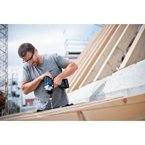 Akku-Drehschlagschrauber GDS 18V-1000, Der GDS 18V-1000 Professional ist der leistungsstarke 1/2"-Drehschlagschrauber mit BITURBO Brushless-Technologie. Seine kabellose Freiheit mit hervorragender Leistung ist dem kraftvollen bürstenlosen Motor zu verdanken, der seine optimale Leistung durch ProCORE18V-Akkus erreicht. Das neue Schlagwerk wurde für ein maximales Anziehmoment von 1.000 Nm und ein maximales Losbrechmoment von bis zu 1.600 Nm konzipiert, und bietet optimale Leistung bei Arbeiten unter schwierigsten Bedingungen. Drei Einstellungen sorgen für ausgezeichnete Kontrolle über Drehzahl und Drehmoment und somit hohe Vielseitigkeit. Der Drehschlagschrauber ist perfekt für Metallanwendungen mit Maschinenschrauben von M 10 bis M 24 wie Stahlbaukonstruktionen, Metallverbindungen, Rohrmontage, LKW-Instandhaltung, und Holzkonstruktionen. Er ist kompatibel mit allen Bosch Professional 18V-Akkus und -Ladegeräten (Professional 18V System); für maximale Leistung ProCORE18V ≥ 5,5 Ah verwenden. Der GDS 18V-1000 Professional verfügt über ECP und EMP, eine Werkzeugstatusanzeige, LED-Licht, eine 1/2"-Werkzeugaufnahme mit Sprengring, und einen Aufbewahrungsclip. Karton; Leiterclip (1600 A02 3G7)