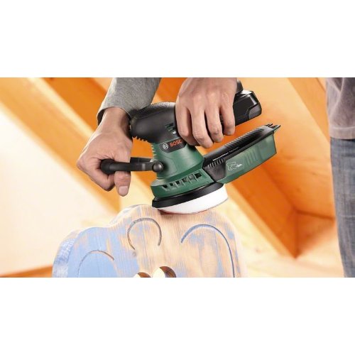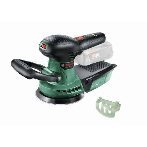 Akku-Exzenterschleifer (ohne Akku und Ladegerät) AdvancedOrbit 18. Erzielt Oberflächen von hervorragender Qualität und bietet kabellose Freiheit. Für Arbeiten an Holz, Gips und gestrichenen, lackierten oder polierten Oberflächen. Microfilter-Staubbox reduziert Staub für mehr Sauberkeit im Arbeitsbereich. Elektronische Drehzahlvorwahl sorgt für die perfekte Drehzahl passend zu Arbeit und Material. Ideal zum kabellosen Schleifen und Polieren flacher oder gewölbter Oberflächen. Kompatibel mit Bosch 18V POWER FOR ALL-Akku. Im Lieferumfang enthalten: Zusatzhandgriff, Staubbox, Paper Assistant (ET-Nr. 2 609 004 646), 1 Schleifpapier K 80, Kartonschachtel