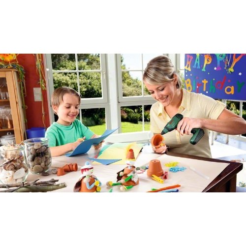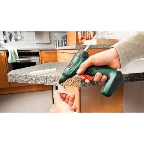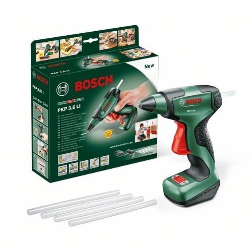 Akku-Heißklebepistole PKP 3.6 LI. Ideal für jedes Projekt, zu jeder Zeit, mit hervorragender Handlichkeit. Jederzeit und überall einsatzbereit dank Lithium-Ionen-Technologie. Betriebsbereit nach einer sehr kurzen Aufheizzeit von 15 Sekunden. Hervorragende Handlichkeit durch kompaktes Design. Für die Verwendung mit nahezu allen Materialien: Papier, Textilien, Holz, Metall, Kunststoff, Stein. Ideal für Dekorationsarbeiten, kleine Reparaturen sowie Kunst- und Handwerksprojekte. Im Lieferumfang enthalten: Micro-USB-Lader, 4 Schmelzkleber UltraPower, Kartonschachtel