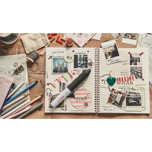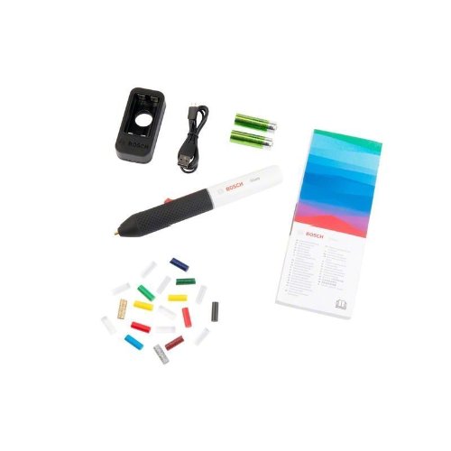Akku-Heißklebestift Gluey. Erwecke aufregende kreative Möglichkeiten mit Gluey! Endlose Möglichkeiten, kreativ zu werden. Kompakt und bequem, für Spaß beim Kleben. Ergonomische Stiftform liegt gut in der Hand. Verschiedenste Materialien schnell kleben, befestigen oder reparieren. Kabellose Freiheit mit umweltfreundlichen wiederaufladbaren AA-Akkus. Im Lieferumfang enthalten: 2x 1,2 V HR06 (AA) wiederaufladbare Akkus, USB-Kabel, 8 transparente Schmelzkleber, 7 Farb-Schmelzkleber, 5 Glitter-Schmelzkleber, USB-Ladegerät, Kartonschachtel