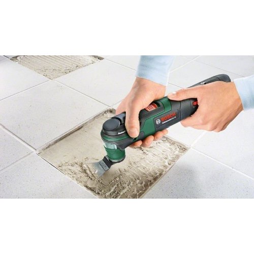 Akku-Multifunktionswerkzeug AdvancedMulti 18. Vielseitige, kabelfreie Lösung für die Bewältigung verschiedenster DIY-Projekte. Leistungsstarker Motor mit elektronischer Drehzahlvorwahl. 180°-Lichtband für optimale Beleuchtung des Arbeitsbereichs. Bosch AutoClic-System ermöglicht schlüssellosen Zubehörwechsel innerhalb von 3 Sekunden. Es ist umfangreiches Starlock-Zubehör für vielfältige Anwendungen erhältlich. Kompatibel mit Bosch 18V POWER FOR ALL-Akku. POWER FOR ALL: ein Akku und ein Ladegerät für das komplette Home & Garden-Gerätesystem. Die Syneon Technology steuert den Energieverbrauch für optimale Effizienz und längere Laufzeit. Im Lieferumfang enthalten: ACZ 85 EB (2 609 256 943), AIZ 32 EPC (2 609 256 947), Anti-Vibrationshandgriff (2 609 256 D59), Deltaschleifplatte 93 mm, AVZ 93 G (2 609 256 956), Deltaschleifblatt-Set (2 609 256 A54), 4-stufiger Tiefenanschlag für Segmentsägeblätter (2 609 256 C61), Kartonschachtel
