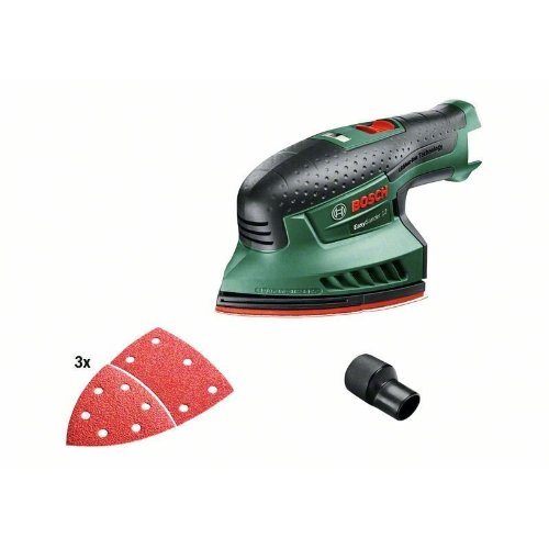 Akku-Multischleifer EasySander 12. Kompakt und kabellos für geläufige Schleifarbeiten und Reparaturen. Kompaktes, ergonomisches Design für eine leichte Bewältigung von Schleifarbeiten in Ecken, an Kanten und an kleineren flachen Oberflächen. PowerAutomatic erhöht automatisch die Leistung, wenn mehr Druck ausgeübt wird. Klettverschlusssystem ermöglicht einfache Schleifpapierwechsel. Adapter für den Anschluss an einen Staubsauger zur Staubabsaugung. Verwendung für Hartholz, Weichholz, gestrichene und lackierte Oberflächen. POWER FOR ALL: Ein Akku und ein Ladegerät für das komplette Home & Garden-Gerätesystem. Syneon Technology steuert den Energieverbrauch für optimale Effizienz und längere Laufzeit. Im Lieferumfang enthalten: Adapter für Staubsauger, 3 Schleifblätter K 80, K 120, K 160 (2 609 000 178), Karton