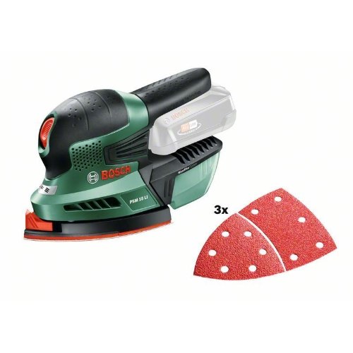 Akku-Multischleifer PSM 18 LI. Leistungsstarkes, kompaktes Schleifmultitalent mit kabelloser Freiheit. Leistungsstarker Alleskönner für Ecken, Kanten und mittelgroße flache Oberflächen. Einfacher und schneller Schleifvorsatzwechsel durch SDS-System. Microfilter-Staubbox reduziert Staub für mehr Sauberkeit im Arbeitsbereich. Kompatibel mit Bosch 18V POWER FOR ALL-Akku. Verwendung für Hartholz, Weichholz, gestrichene und lackierte Oberflächen. POWER FOR ALL: ein Akku und ein Ladegerät für das komplette Home & Garden-Gerätesystem. Die Syneon Technology steuert den Energieverbrauch für optimale Effizienz und längere Laufzeit. Im Lieferumfang enthalten: 3 Schleifblätter K 80, K 120, K 160 (2 609 000 178), Kartonschachtel