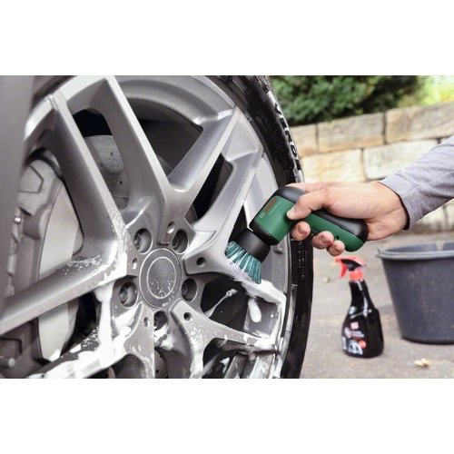Akku-Reinigungsbürste Bürste. Entfernt hartnäckigen Schmutz – schnell, mühelos und einfach. Die perfekte Hilfe für anspruchsvolle Reinigungsarbeiten. Für Waschbecken, Fliesen und Fugen in Bad und Küche. Reinigung von Felgen, Terrassenmöbeln und Fliesenfugen im Außenbereich. Nachhaltiges Design: wiederverwendbar und spülmaschinenfest bis 50 °C. Im Lieferumfang enthalten: Borstenbürste (1 600 A02 3KW), Kartonschachtel