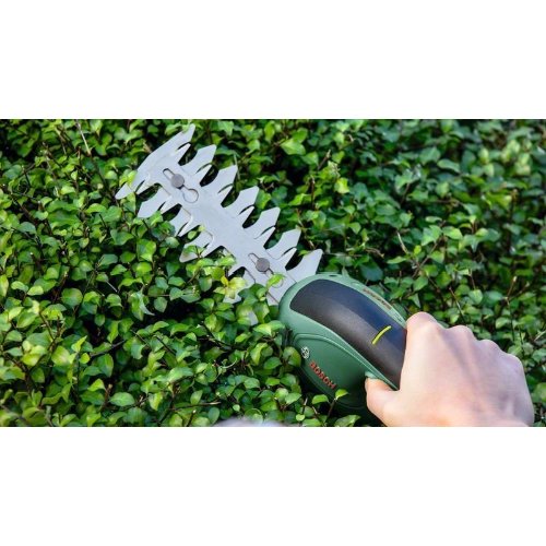 Akku-Strauch- und -Grasscheren-Set EasyShear. Einfaches, leichtes Schneiden sowohl von Sträuchern als auch von Rasenkanten. 2-in-1 – für den Strauch- und Rasenschnitt. Werkzeugloser Messerwechsel für mühelosen Zubehörtausch. Kabellose Freiheit für umfassende Manövrierbarkeit im Garten. Das geringe Gewicht von 530 g und das kompakte Design ermöglichen eine einfache Lagerung und eine sofortige Einsatzbereitschaft. Integrierter 3,6V-Li-Ion-Akku für optimale Leistung. Im Lieferumfang enthalten: Micro-USB-Kabel (1 607 000 CG9), Strauchmesser, 120 mm (F 016 800 588), Grasmesser, 100 mm (F 016 800 589), Kartonschachtel