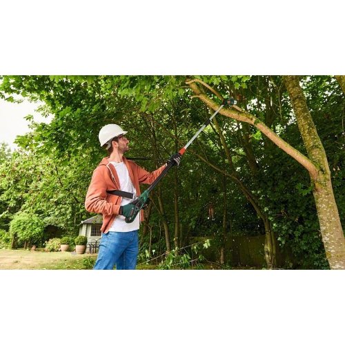 Akku-Teleskop-Hochentaster UniversalChainPole 18. Müheloses Beschneiden schwer zugänglicher Äste. Teleskopstange ermöglicht einen weiten Schnittbereich vom Boden aus. Leichtes, ergonomisches Design reduziert die Belastung für Arme und Schultern. Führungsschutz und Krallenanschlag für eine bessere Kontrolle beim Schneiden und Unterschneiden. Für eine kontinuierliche Schnittleistung, ohne Äste zu beschädigen. Ölstandsanzeige und automatische Kettenschmierung für Laufruhe. POWER FOR ALL: Ein Akku für das komplette Home & Garden Gerätesystem. Im Lieferumfang enthalten: 1 Akkupack PBA 18 V 2,5 Ah W-B, Ladegerät AL 1830 CV (1 600 A00 5B3), Karton