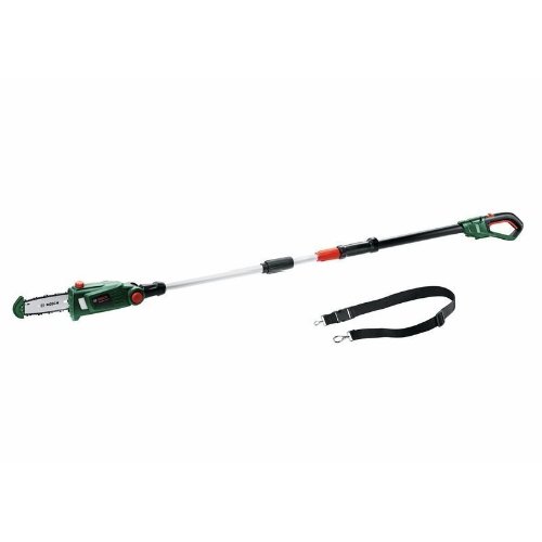 Akku-Teleskop-Hochentaster UniversalChainPole 18. Müheloses Beschneiden schwer zugänglicher Äste. Teleskopstange ermöglicht einen weiten Schnittbereich vom Boden aus. Leichtes, ergonomisches Design reduziert die Belastung für Arme und Schultern. Führungsschutz und Krallenanschlag für eine bessere Kontrolle beim Schneiden und Unterschneiden. Für eine kontinuierliche Schnittleistung, ohne Äste zu beschädigen. Ölstandsanzeige und automatische Kettenschmierung für Laufruhe. POWER FOR ALL: Ein Akku für das komplette Home & Garden Gerätesystem. Im Lieferumfang enthalten: Kartonschachtel