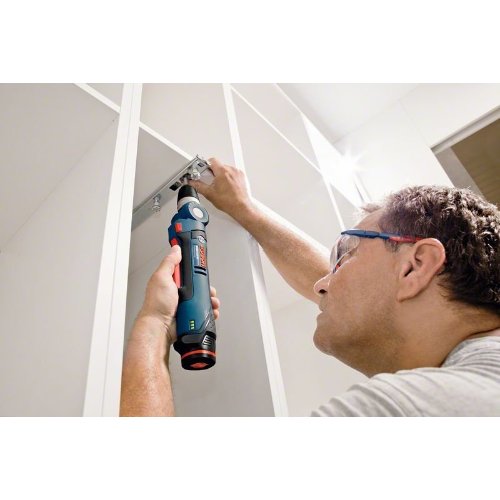 Akku-Winkelbohrmaschine GWB 10.8 V-LI, Die Akku-Winkelbohrmaschine GWB 12V-10 Professional aus der 12-Volt-Klasse von Bosch ist die kompakte Lösung für schwer zugängliche Stellen. Sie ist extrem vielseitig: Ihr Schwenkkopf mit 5 einstellbaren Positionen lässt sich an jede Arbeitssituation anpassen. Zusätzlich sorgen der schmale Handgriff mit Softgrip und der verlängerte Schalter des Gerätes für ein Maximum an Komfort und Kontrolle. Mit einem Drehzahlbereich von 0-1.300 U/min ist schneller Arbeitsfortschritt gewährleistet. Dieses Elektrowerkzeug wurde zum Bohren in Holz mit einem maximalen Durchmesser von 10 mm und für Schraubdurchmesser bis 6 mm konzipiert. Das Gerät ist mit allen Bosch Professional 12-Volt-Akkus und -Ladegeräten kompatibel (Professional 12V System). Der GWB 12V-10 Professional verfügt außerdem über Autolock, Ladezustandsanzeige, Electronic Cell Protection, Lithium-Ionen-Technologie und zwei LED-Lichter. Karton; 1/2 L-BOXX-Einlage für Gerät (1 600 A00 2W8)