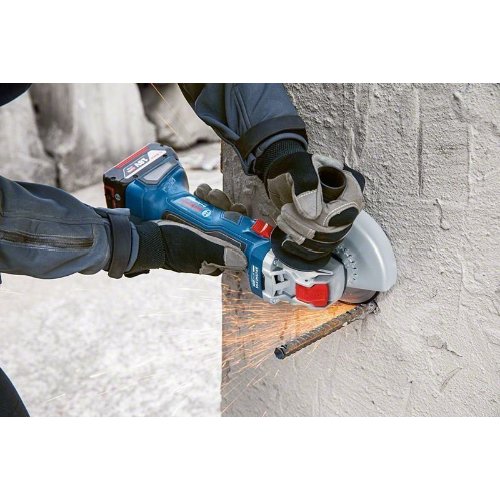 Akku-Winkelschleifer GWX 18V-7, Der Akku-Winkelschleifer GWX 18V-7 Professional ist Boschs Lösung für ein kompaktes und praktisches Trenngerät mit solider 18-Volt-Leistung und X-LOCK-System. Sein bürstenloser Motor liefert für zuverlässiges Arbeiten dieselbe Leistung wie ein 700-Watt-Winkelschleifer mit Kabel. Dank des werkzeuglosen X-LOCK-Systems kann Zubehör blitzschnell gewechselt werden, so dass sich Anwender ganz auf das konzentrieren können, was wirklich wichtig ist: die anstehende Arbeit. Das leichte Design des GWX 18V-7 und der schmale Griffumfang ermöglichen angenehmes und vielseitiges Trennen. Dieser Winkelschleifer ist ideal für alle Trennarbeiten bei Metall, Fliesen oder Mauerwerk. Das Gerät ist kompatibel mit X-LOCK Zubehör, allen Bosch Professional 18-Volt-Akkus und den Bosch Absaughauben GDE 115/125 FC-T Professional sowie GDE 125 EA-T Professional. Schutzhaube (1 605 510 365); Zusatzhandgriff (1 602 025 024); L-BOXX 136 (1 600 A01 2G0); 1/1 L-BOXX-Einlage (1 600 A02 2ZN)