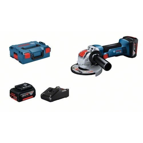 Akku-Winkelschleifer mit X-LOCK GWX 18V-8, Boschs kleinster und leichtester Winkelschleifer im 18V-Sortiment – mit X-LOCK, Extrem robuster und strapazierfähiger 4-Pol-Hochleistungsmotor für lange Lebensdauer, Schneller und bequemer Zubehörwechsel dank schlüssellosem X-LOCK-Klicksystem, Optimiertes geringes Gewicht und kompaktes Gehäuse für Arbeiten über Kopf und in engen Bereichen, Zusatzhandgriff (1 602 025 024); Schutzhaube (1 605 510 365); L-BOXX 136 (1 600 A01 2G0); 1/1 L-BOXX-Einlage für Gerät und Ladegerät (1 600 A00 2WH); Schnellladegerät GAL 18V-40 Professional (1 600 A01 9RJ); 2 x Akku GBA 18V 5.0Ah (1 600 A00 2U5)