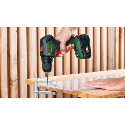 Akku-Zweigang-Bohrschrauber UniversalDrill 18V-60. Höchstleistung und maximale Ausdauer. Höhere Leistung und längere Laufzeit durch bürstenlosen Motor. Robustes 13-mm-Metallfutter für eine sichere Bohrerbefestigung und einfachen Zubehörwechsel. 2-Gang-Getriebe und 20 Drehmomenteinstellungen sorgen für Kontrolle und Präzision. Maximales hartes Drehmoment: 60 Nm. Der Allrounder zum Schrauben und für das Bohren in Holz, Kunststoff und Metall. Syneon Technology für optimale Kraft und Ausdauer nach Bedarf. 18V POWER FOR ALL – der Akku für alle Bosch 18V Home & Garden-Gartengeräte. Im Lieferumfang enthalten: Doppelschrauberbit, Kartonschachtel