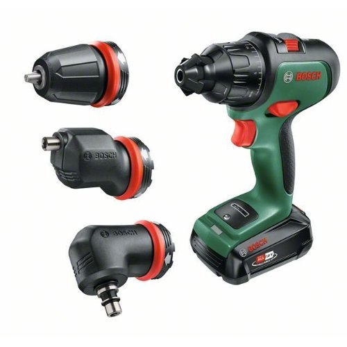 Akku-Zweigang-Schlagbohrschrauber AdvancedImpact 18. Schlagbohrschrauber mit einfachster Bedienung und großer Vielseitigkeit. Intuitive Auswahlmodi sowie automatische Gangwechsel passen für jede Anwendung. Das Schaltsystem bietet einen Richtungswechsel mit nur einem Klick. Richtungsanzeige mit LED-Licht. QuickSnap-Winkel- und Exzenteraufsätze als Ideallösung für schwer zugängliche Bereiche. Kraftvoll, kompakt und langlebig dank bürstenlosem Motor. Schrauben, Bohren in Holz und Metall, Schlagbohren in Ziegel- und Kalkstein. POWER FOR ALL: Ein Akku für das komplette Home & Garden-Gerätesystem. Syneon Technology steuert den Energieverbrauch für optimale Effizienz und längere Laufzeit. Im Lieferumfang enthalten: 1 Akkupack PBA 18 V 2,5 Ah W-B, Winkelaufsatz, Exzenteraufsatz, Ladegerät AL 1830 CV (1 600 A00 5B3), Tragekoffer