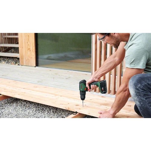 Akku-Zweigang-Schlagbohrschrauber UniversalImpact 18V-60. Kraftvolles Schrauben und Schlagbohren mit maximaler Ausdauer und optimalem Komfort. Bürstenloser Motor sorgt für hervorragende Bohrleistung und eine längere Laufzeit. Robustes 13-mm-Metallfutter für eine sichere Bohrerbefestigung und einfachen Zubehörwechsel. Optimale Kontrolle durch 20 Drehmomentvoreinstellungen und einem maximalen harten Drehmoment von 60 Nm. 2-Gang-Getriebe, Bohr- und Schlagbohrmodus. Müheloses Schrauben und Schlagbohren in Mauerwerk, Holz, Metall und Kunststoff. Syneon Technology für optimale Kraft und Ausdauer nach Bedarf. 18V POWER FOR ALL – der Akku für alle Bosch 18V Home & Garden-Gartengeräte. Im Lieferumfang enthalten: Doppelschrauberbit, Kartonschachtel
