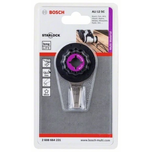 Der Fugenschneider Starlock ALI 12 SC ermöglicht bequemes Schneiden und Entfernen der Dichtmasse zwischen Paneelen. Das Schneiden ist einfach dank geschliffener Spitze und rasiermesserscharfen Schneiden auf beiden Seiten des Sägeblatts. Dieses Edelstahlmesser (Inox) ist haltbar und rostträge. Zudem gleitet die 4 mm breite, auf Zug und auf Druck arbeitende Schneide problemlos durch biegsame und zähe Materialien. Dieses Blatt ist ideal zum Schneiden und Entfernen von Vertäfelungsdichtmassen und Silikon geeignet. Das Starlock-Aufnahmesystem ermöglicht einen schnellen Blattwechsel ohne Blattberührung in drei Sekunden. Das Aufnahmesystem ermöglicht durch seine dreidimensionale enge Passung maximale Kraftübertragung zwischen Maschine und Zubehör.