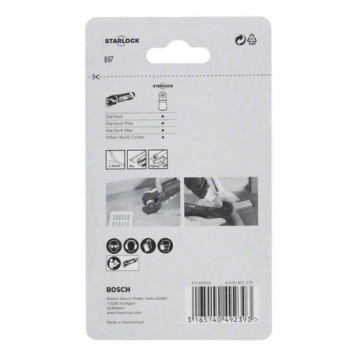 Das Blatt Starlock ACZ 85 EB mit hoher Lebensdauer bei Schnitten in ungehärtetes Metall. Die Bimetallverbindung aus Blatt aus HCS-Stahl und Zähnen aus HSS-Stahl ist verschleiß- und hitzeresistent und verleiht dem Blatt beim Schneiden von ungehärtetem Metall und abrasivem Material eine hohe Lebensdauer. Die patentierte Rundschweißtechnologie von Bosch verschweißt einen HSS-Streifen mit einem HCS-Blattgrundkörper. Das Ergebnis sind robuste, freistehende Zähne, die Verklemmen und Hitzespuren verhindern und auch bei häufiger Nutzung zuverlässig schneiden. Für das Ablängen von Türstöcken und kleineren Profilen, das Ausschneiden von Laminat und Parkett, für bündige Holzschnitte und Schnitte in ungehärtetes Metall, Kunststoff und Metall im Sandwichverbund. Die spitzen Sägeblattenden ermöglichen das Schneidearbeiten in schwer zugänglichen Ecken in gleichbleibender Qualität. Das Starlock-Aufnahmesystem ermöglicht einen schnellen Blattwechsel ohne Blattberührung in drei Sekunden. Das Starlock-Aufnahmesystem ermöglicht durch seine dreidimensionale enge Passung maximale Kraftübertragung zwischen Maschine und Zubehör.