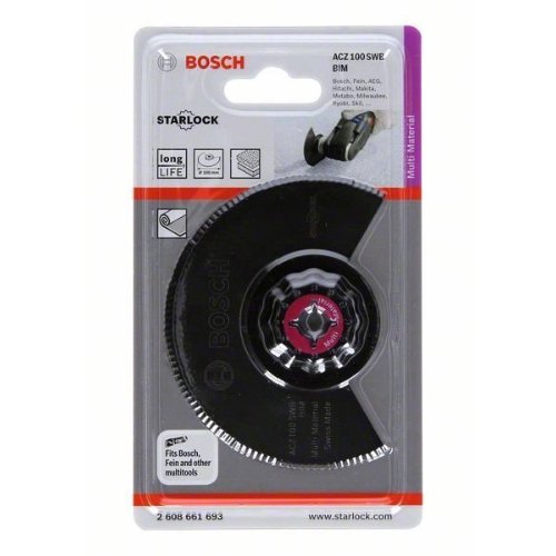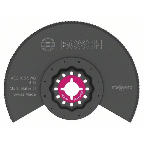 Das Segmentwellenschliffmesser Starlock ACZ 100 SWB ermöglicht schnelle Schnitte in verschiedene weiche biegesteife Materialien. Der Wellenschliff lässt die Schneidepunkte das Material schneller und tiefer fassen als normale, glatt geschliffene Schneiden und liefert somit schneller Resultate. Mit dem großen Durchmesser von 100 mm wird eine breitere Schnittfläche angegangen, was zu dynamischer Materialabtransport und schnellem Arbeitsfortschritt beiträgt. Mit dem Blatt können schnelle bündige Schnitte in hervorstehendes Dämmmaterial gemacht werden und Karton sowie weiche Materialien wie Linoleum, Teppichboden und Spachtelmasse zugeschnitten werden. Beim Schneiden von ungehärtetem Metall und abrasivem Material ist die Bimetallverbindung aus Blatt aus HCS-Stahl (Stahl mit hohem Kohlenstoffgehalt) und Zähnen aus HSS-Stahl (Schnellarbeitsstahl) verschleiß- und hitzeresistent und verleiht dem Blatt eine hohe Lebensdauer. Die spitzen Sägeblattenden ermöglichen das Schneiden in Ecken, der runde Teil des Blatts gerade Schnitte. Das Starlock-Aufnahmesystem ermöglicht einen schnellen Blattwechsel ohne Blattberührung in drei Sekunden. Das Starlock-Aufnahmesystem ermöglicht durch seine dreidimensionale enge Passung maximale Kraftübertragung zwischen Maschine und Zubehör.