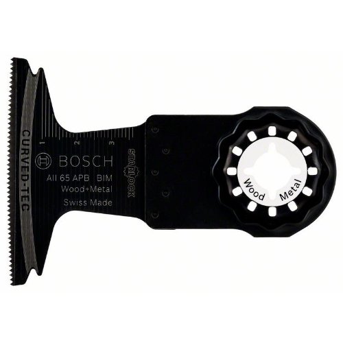 Das Tauchsägeblatt Starlock AII 65 APB mit hoher Lebensdauer bei Breitschnitten in Holz und in ungehärtete Metalle Robuste Bimetallverbindung aus Blatt aus HCS-Stahl (Stahl mit hohem Kohlenstoffgehalt) und Zähnen aus HSS-Stahl (Schnellarbeitsstahl). Verschleiß- und hitzeresistent, gewährt beim Schneiden von Metall und abrasivem Material hohe Lebensdauer. Flache Blattgestaltung reduziert Lateralschwingung und ermöglicht mittels direkter und blattschonender Kraftübertragung präzise Schnitte. Die abgerundete Blattspitze (Curved-Tec) vermeidet Zahnbruch und erhöht somit die Haltbarkeit. Dieses Blatt wird verwendet zum Ablängen von Türstöcken am Boden und für Tauchschnitte in laminierte Paneele. Sägt Holz mit ungehärtetem Metall, weichen Kunststoff, Gipskartonplatten sowie Holz mit Nägeln. Das Starlock-Aufnahmesystem ermöglicht einen schnellen Blattwechsel ohne Blattberührung in drei Sekunden. Das Aufnahmesystem ermöglicht durch seine dreidimensionale enge Passung maximale Kraftübertragung zwischen Maschine und Zubehör.