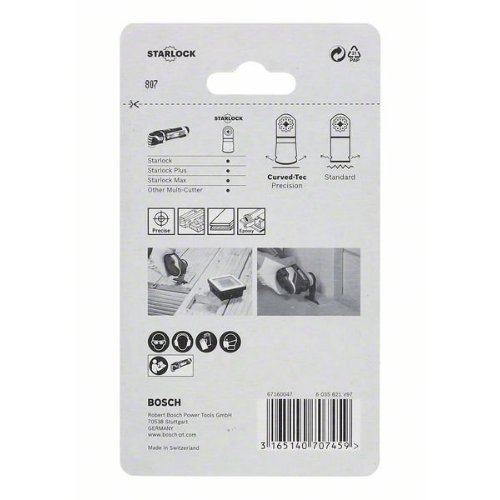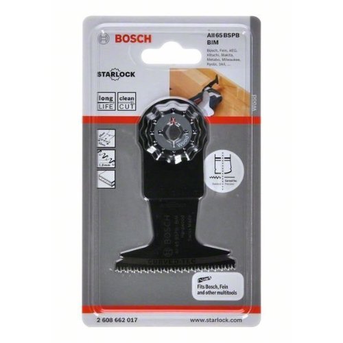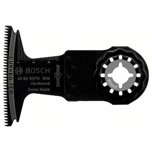 Das Tauchsägeblatt Starlock AII 65 BSPB hat bei breiten Schnitten in Hartholz eine hohe Lebensdauer. Die robuste Bimetallverbindung aus Blatt aus HCS-Stahl (Stahl mit hohem Kohlenstoffgehalt) und Zähnen aus HSS-Stahl (Schnellarbeitsstahl) ist verschleiß- und hitzeresistent. Die japanische Anordnung der scharfgeschliffenen Zähne an der Blattkante ist ideal für Hartholz geeignet. Diese dreidimensionale Zahnanordnung minimiert die Wärmeentwicklung beim Sägen, verhindert Überhitzung und erhöht die Nutzungsdauer. Die abgerundete Blattspitze (Curved-Tec) minimiert Zahnbruch und erhöht somit die Haltbarkeit des Produkts. Es wird verwendet für das Tauchsägen in laminierte Paneele oder Hartholz, das Sägen von Aussparungen in Möbelbauteile und das bündige Ablängen von Holzbauteilen. Das Starlock-Aufnahmesystem ermöglicht einen schnellen Blattwechsel ohne Blattberührung in drei Sekunden. Das Aufnahmesystem ermöglicht durch seine dreidimensionale enge Passung maximale Kraftübertragung zwischen Maschine und Zubehör.