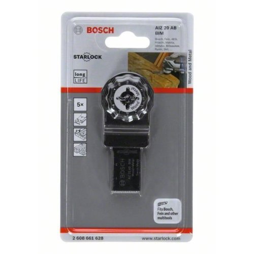 Das Tauchsägeblatt Starlock AIZ 20 AB ermöglicht Feinschnitte in Holz und ungehärtetes Metall. Das schmale Blatt von 20 mm Breite ermöglicht Filigranarbeit. Das robuste Starlock-Aufnahmesystem reduziert Lateralschwingung des Blattes und ermöglicht mittels direkter Kraftübertragung haarfeine Schnitte. Es wird verwendet für das Sägen von Aussparungen in Möbelbauteile, bündiges Ablängen von Kupferrohren und Tauchschnitte in Gipskartonplatten. Dieses Blatt sägt Holz und ungehärtetes Metall, weiche Kunststoffe und Paneele mit Kunststofflaminierung. Die Bimetallverbindung aus Blatt aus HCS-Stahl (Stahl mit hohem Kohlenstoffgehalt) und Zähnen aus HSS-Stahl (Schnellarbeitsstahl) ist verschleiß- und hitzeresistent und gewährt dem Blatt beim das Schneiden von ungehärtetem Metall und abrasivem Material eine hohe Lebensdauer. Das Starlock-Aufnahmesystem ermöglicht einen schnellen Blattwechsel ohne Blattberührung in drei Sekunden. Das Aufnahmesystem ermöglicht durch seine dreidimensionale enge Passung maximale Kraftübertragung zwischen Maschine und Zubehör.