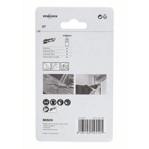 Das Tauchsägeblatt Starlock AIZ 32 AB hat bei Schnitten in ungehärtetem Metall eine hohe Lebensdauer. Die robuste Bimetallverbindung aus Blatt aus HCS-Stahl (Stahl mit hohem Kohlenstoffgehalt) und Zähnen aus HSS-Stahl (Schnellarbeitsstahl) ist bei hartem oder abrasivem Material verschleiß- und hitzeresistent. Sein zur Basis hin verjüngtes Blatt minimiert Verklemmen, transportiert Material schnell ab minimiert somit den Blattverschleiß. Das robuste Aufnahmesystem des AIZ 32 AB reduziert Lateralschwingung und ermöglicht mittels direkter Kraftübertragung präzise Schnitte bei verlängerter Nutzungsdauer. Dieses Produkt wird verwendet für das bündige Ablängen von Nägeln und Kupferrohren sowie Tauchschnitte in Gipskartonplatten. Das Starlock-Aufnahmesystem ermöglicht einen schnellen Blattwechsel ohne Blattberührung in drei Sekunden. Das Aufnahmesystem ermöglicht durch seine dreidimensionale enge Passung maximale Kraftübertragung zwischen Maschine und Zubehör.