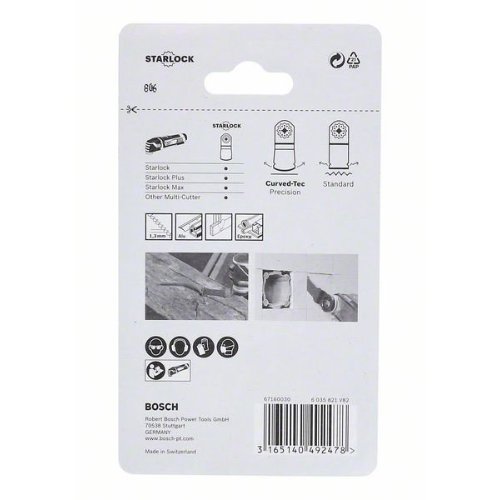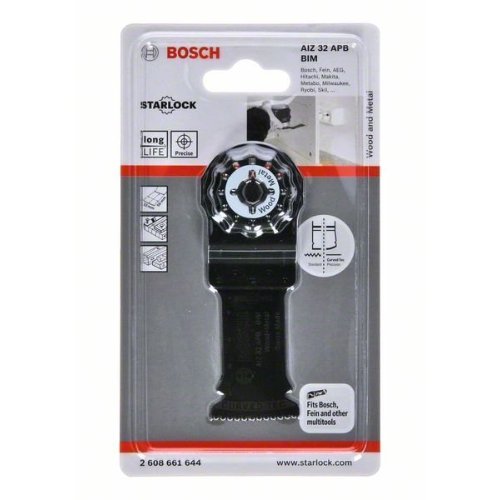 Das Sägeblatt Starlock AIZ 32 APB ermöglicht präzise bündige Schnitte und tiefe Tauchschnitte in Holz, Metall und Kunststoff. Dank der abgerundeten Blattspitze (Curved-Tec) sind die Schnitte von Anfang an präzise. Das robuste Starlock-Aufnahmesystem erhöht die Kontrolle über die Führung und ermöglicht mit direkter Kraftübertragung und reduzierter Lateralschwingung hochgradig präzise Schnitte. Dieses vielseitig einsetzbare Blatt schneidet auch sehr harte Verbundwerkstoffe aus Holz und Metall, wie auch ungehärtete Nägel und Schrauben, Rohre aus Nichteisenmetall und Profile kleinerer Abmessungen. Die extrem verschleißfesten und wärmebeständigen Zähne aus HSS-Stahl (High Speed Steel, Schnellarbeitsstahl) bieten eine lange Lebensdauer in Nichteisenmetallen und Schleifmaterialien. Das Starlock-Aufnahmesystem ermöglicht einen schnellen Blattwechsel ohne Blattberührung in drei Sekunden. Das Aufnahmesystem ermöglicht durch seine dreidimensionale enge Passung maximale Kraftübertragung zwischen Maschine und Zubehör.